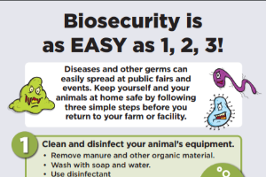 Diseases and other germs can easily spread at public fairs and events. Keep yourself and your animals at home safe by putting up this easy to read poster that includes three simple steps for biosecurity.