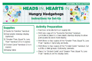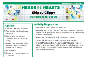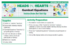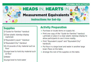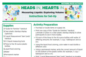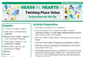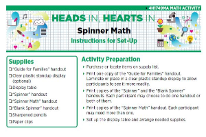 Heads In, Hearts In: A Delivery Approach to Mindfulness Programming – Math Activities are designed to help Michigan State University Extension staff members to involve partners in facilitating a family enrichment program around the topic of math. This page includes the full math activity book containing all 16 math activities, the staff guide for tips for facilitating a family enrichment event and all 16 math activities available for download individually.