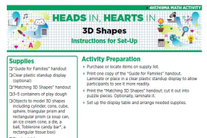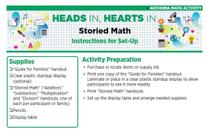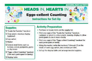 The Heads In, Hearts In family enrichment program encourages families to use their minds (putting their “heads in”) as a tool to expand their knowledge around literacy. This series contains 16 math activities.