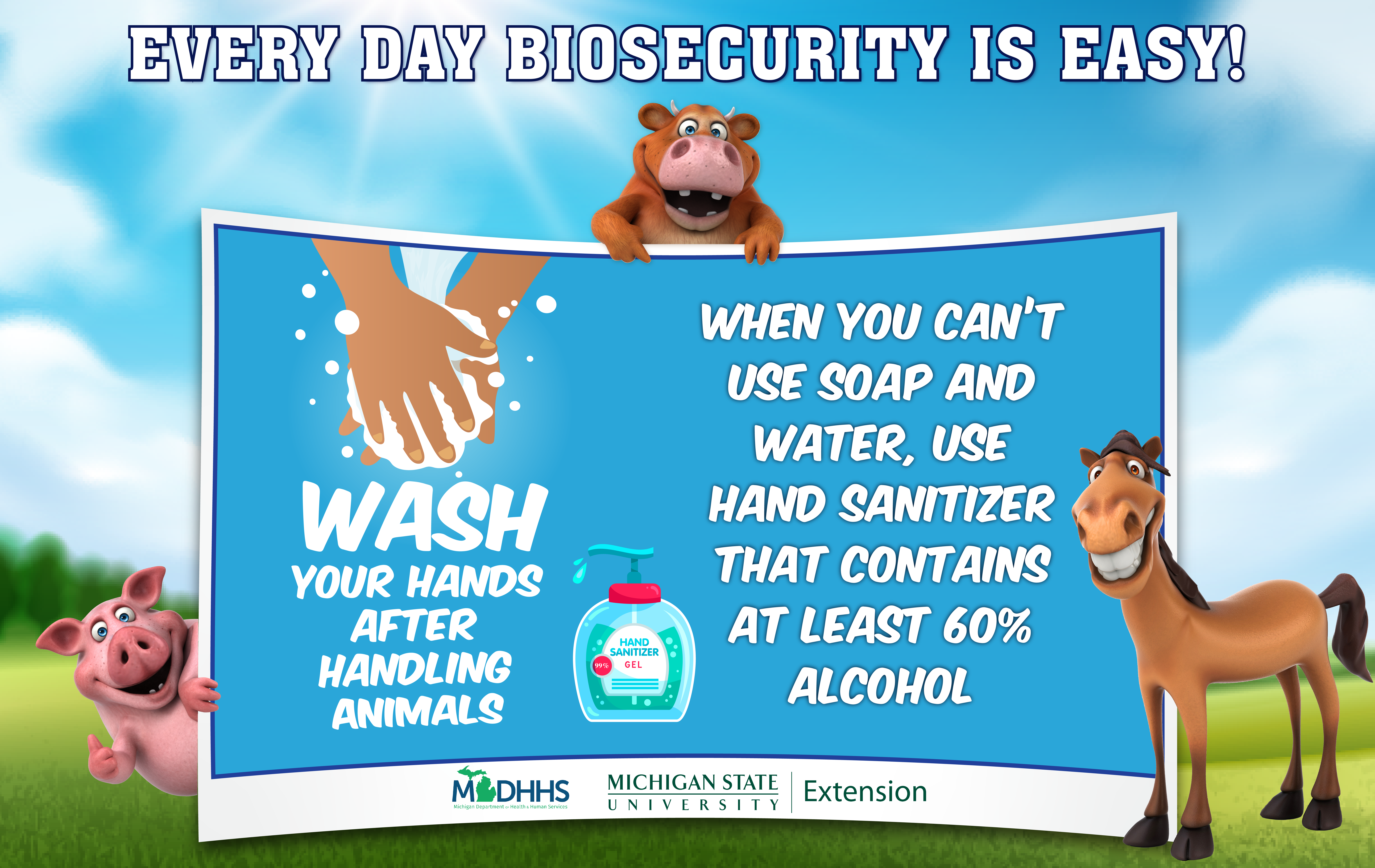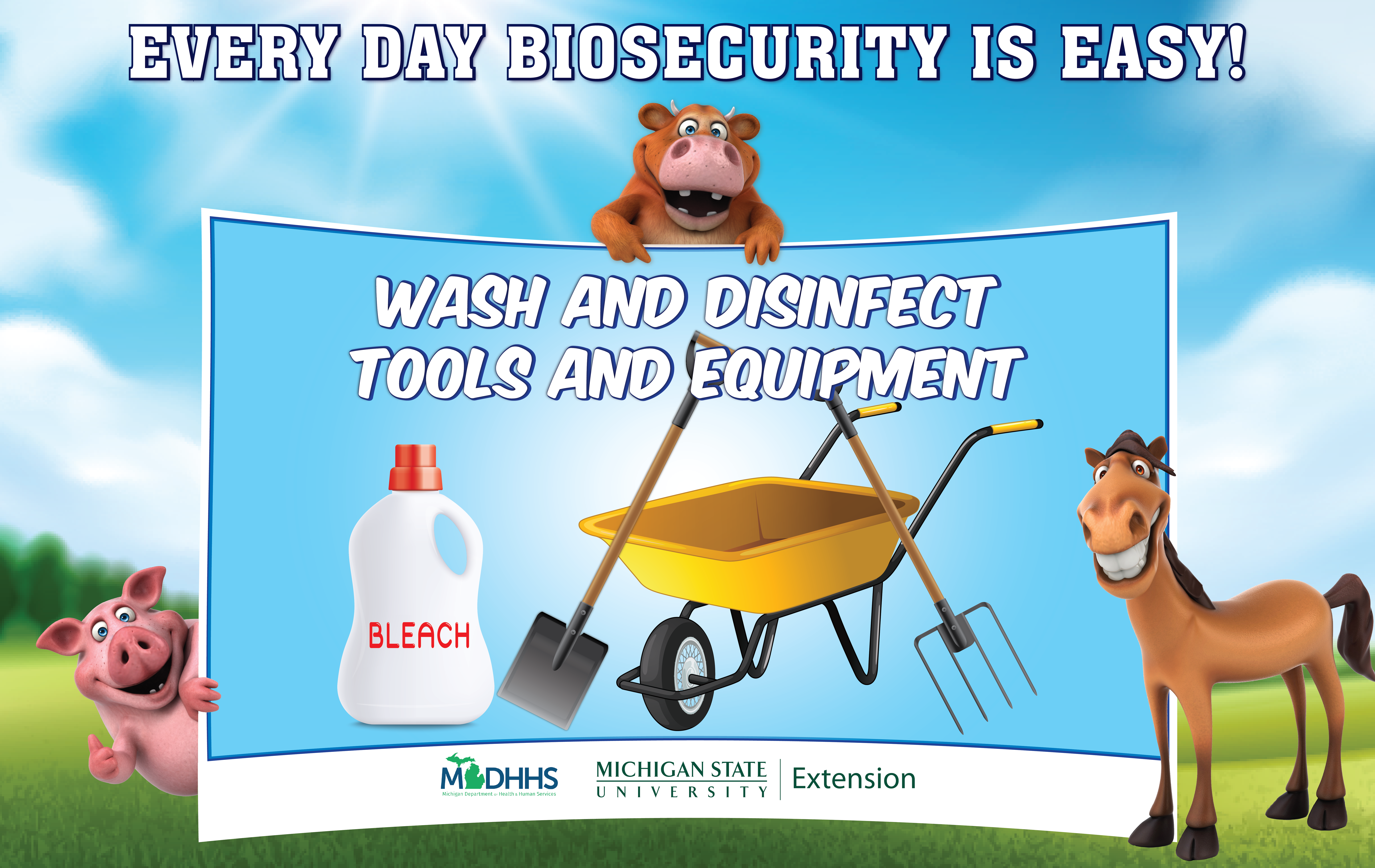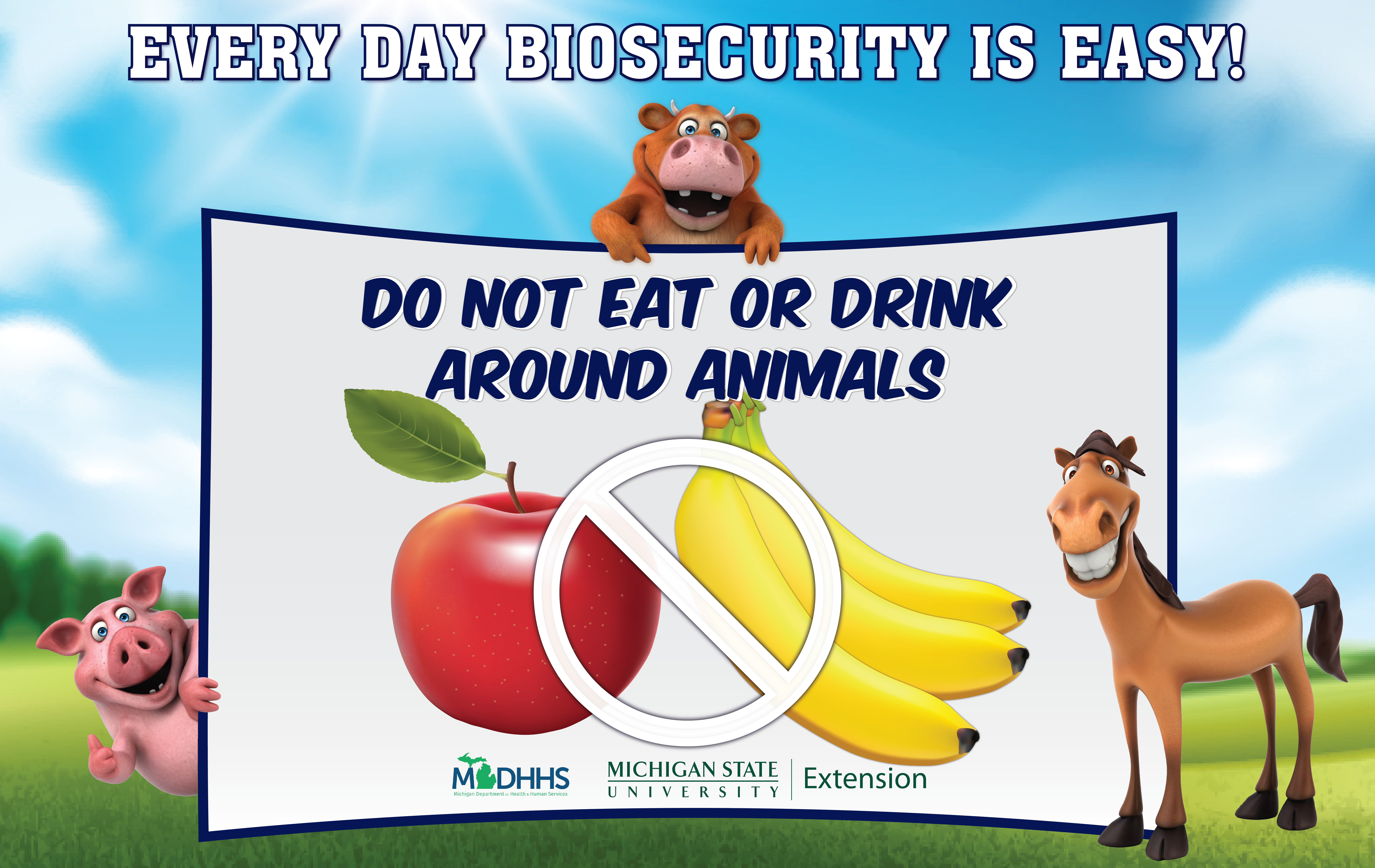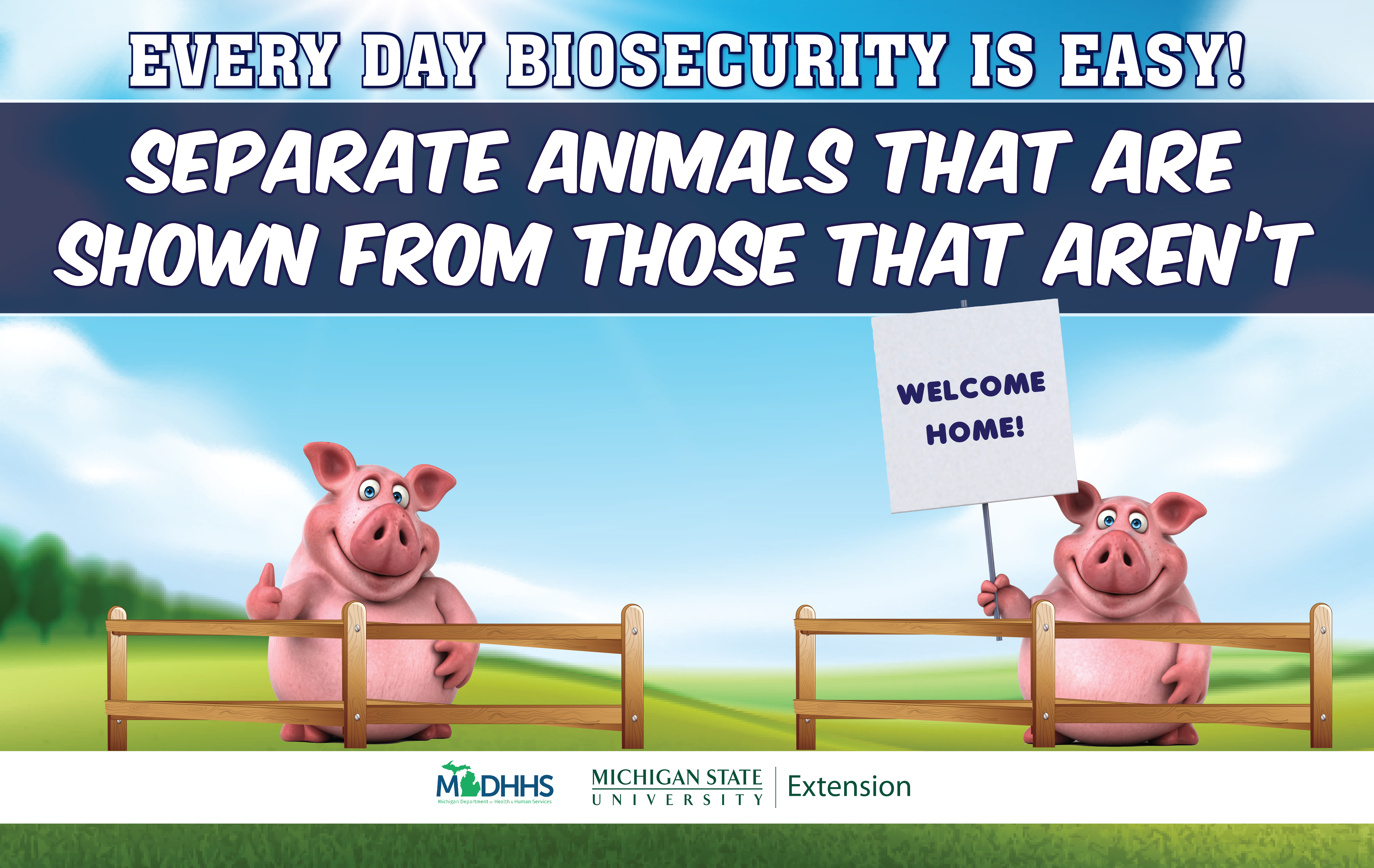 People who raise animals are not the only ones who need to be concerned about diseases that can easily spread between humans and animals. These types of diseases are called zoonotic diseases, and anyone who encounters animals could be at risk. The best way to prevent the spread of zoonotic diseases is by having and using a plan that reduces the risk of disease transmission.  This is known as biosecurity and it is an important step to making sure people and animals remain healthy.  On this website, you can find resources to create a biosecurity program, and materials for educating youth and adults about zoonotic diseases.