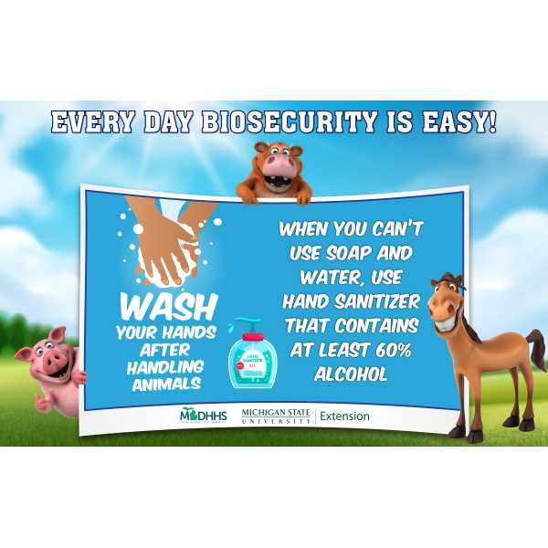 People who raise animals are not the only ones who need to be concerned about diseases that can easily spread between humans and animals. These types of diseases are called zoonotic diseases, and anyone who encounters animals could be at risk. The best way to prevent the spread of zoonotic diseases is by having and using a plan that reduces the risk of disease transmission. This is known as biosecurity and it is an important step to making sure people and animals remain healthy. On this website, you can find resources to create a biosecurity program, and materials for educating youth and adults about zoonotic diseases.