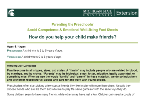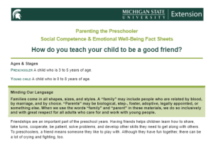 A fact sheet showing parents how to teach their child to be a good friend. -