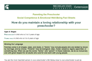 A fact sheet teaching parents how to maintain a loving relationship with their preschooler.