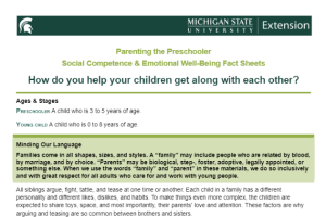 A fact sheet on teaching parents how to help their children get along with each other. -