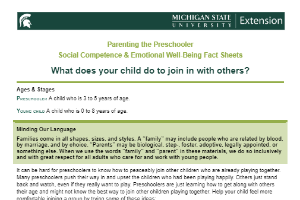 A fact sheet asking parents how their child engages with other kids and what they do to join in. -