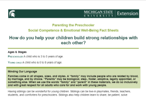 A fact sheet teaching parents how to help their children build strong relationships with each other. -