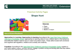 The Preschool Activity Sheets will provide ways for parents to play and explore with their young children while building cognitive, social-emotional, and physical motor skills.
