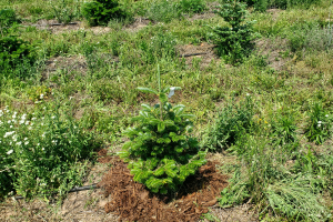 Organic mulching for weed control and mitigating cold stress in Christmas tree production