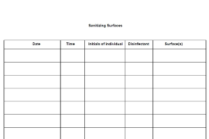 This is a sample of a form used to keep track of surfaces being sanitized in food processing facilities. -