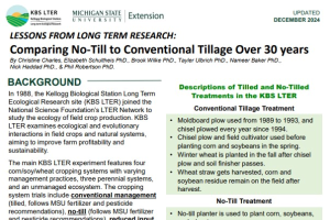 A summary of over 30 years of research by KBS LTER that measured yield, profitability, soil aggregation, carbon sequestration, greenhouse gas emissions and soil moisture in tilled and no-tilled fields. -