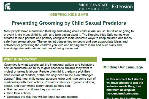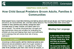 This fact sheet helps parents and other adults who work with or care for children understand the process of “grooming” or manipulating children in order to abuse them. -