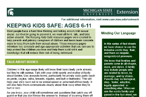 This resource introduces key concepts and age-appropriate activities for youth ages 6-11 that can be used to help protect children from child sexual abuse and help them build skills and knowledge that will reduce their risk of being victimized. -