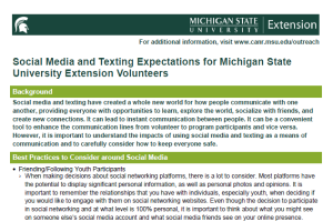 Social Media and Texting Expectations for Michigan State University Extension Volunteers