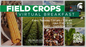 The 2025 MSU Extension Field Crops Virtual Breakfast series will kick off the growing season series on March 27. The series runs every Thursday from 7 a.m. – 8 a.m. ET, through September 18. -