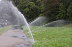 Light, frequent irrigation during this hot, dry weather will help your lawn survive and thrive. -