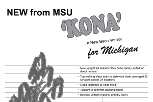 'KONA' is a new upright, high-yielding, black bean variety from Michigan State University that exhibits high yield and good dry down at maturity. -