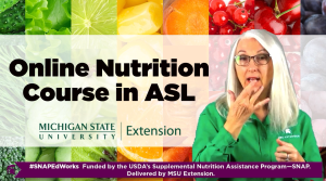 Eat Healthy Be Active in American Sign Language is a video-based nutrition class with live support as needed for SNAP-Ed participants. -