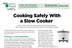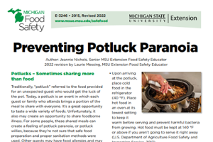 A potluck can be an opportunity to socialize and to taste a wide variety of foods. This bulletin gives tips on organizing a safe potluck and serving food safely to avoid illness, on handling leftovers safely, and hints to make your potluck special.