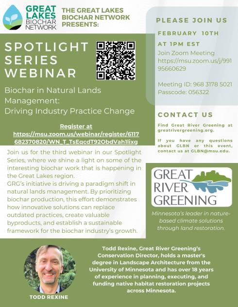 Join us for the third webinar in our Spotlight Series, where we shine a light on some of the interesting biochar work that is happening in the Great Lakes region. GRG's initiative is driving a paradigm shift in natural lands management. By prioritizing biochar production, this effort demonstrates how innovative solutions can replace outdated practices, create valuable byproducts, and establish a sustainable framework for the biochar industry's growth.