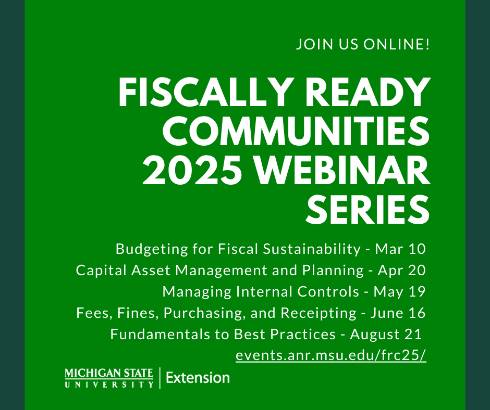 This partnership between MSU Extension and the Michigan Department of Treasury helps local governments work towards fiscal health by sharing best practices in fiscal sustainability. These trainings help local governments work towards long-term fiscal sustainability, helping them to support thriving communities. Below you’ll find a description of each webinar and dates for the programs in the first half of 2024. The webinars can be taken individually or as a series.