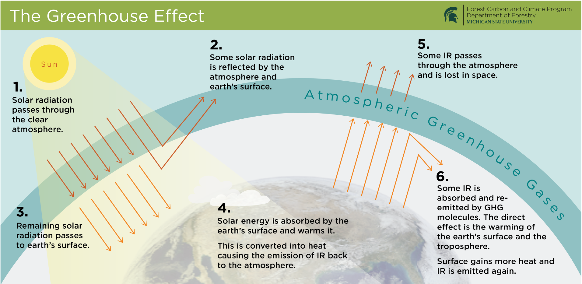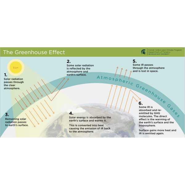 The Greenhouse Effect: An overview of the Greenhouse Effect, adapted from an image made available by Okanagan University College, University of Oxford, US EPA, UNEP and WMO. Original image source available at http://www.grida.no/resources/6467.