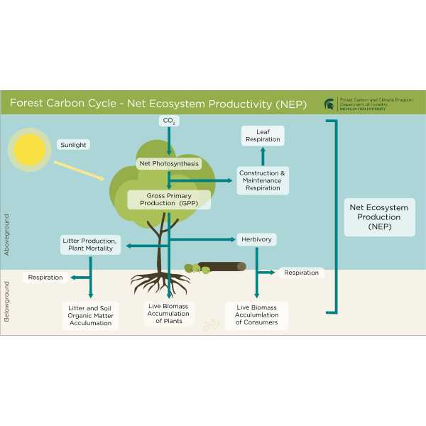 Forest Carbon Cycle – Net Ecosystem Productivity (NEP): Carbon losses result from respiration, herbivory, litter production, and plant mortality.