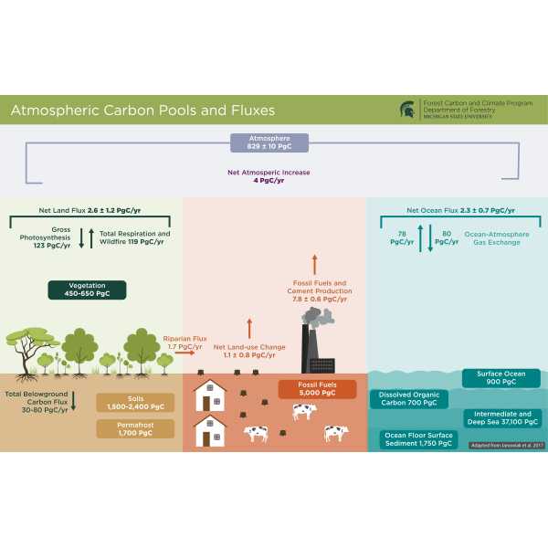 Atmospheric Carbon Pools and Fluxes: An overview of relationship between different atmospheric carbon pools and fluxes. A carbon flux is the amount of carbon exchanged between Earth's carbon pools - the oceans, atmosphere, land, and living things.