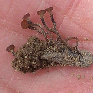 Apothecia produced by the white mold pathogen Sclerotinia sclerotiorum.