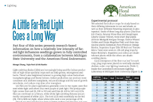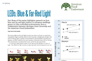 Part 3 of a 5-part series summarizes results from an indoor lighting experiment with floriculture crop seedlings, where we determined whether blue light could nullify the effects of far red on stem elongation, without inhibiting flowering. -
