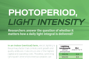 In part 3 of a 5-part series on the indoor production of leafy greens, the interactive effects of far-red light and light intensity on lettuce growth are discussed. -