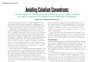 The first article of a two-part series discusses how to grow a better caladium crop with air, substrate and irrigation water temperature management. -