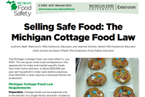 The Michigan Cottage Food Law took effect in July 2010. This law gives small-scale entrepreneurs the opportunity to make and market specific foods from their home kitchens. It allows $25,000 per year per household in total sales before expenses. -