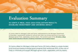 10 Cents a Meal for Michigan’s Kids and Farms was a state-funded local food purchasing incentive grant program that reimbursed 50% of the cost of fresh or minimally processed produce. Explore the evaluation findings of the 2023-2024 program year. -
