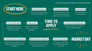 The Michigan Farmers Market Vendor Journey Map is a free, step-by-step guide for new farmers and food producers. It covers licensing, marketing, display tips, and prep essentials to help you succeed at your first farmers market -