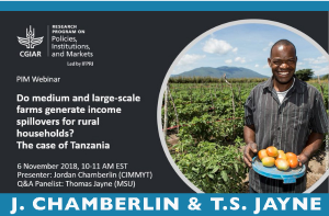 WEBINAR, Nov. 6, 2018, 10-11 AM - T. Jayne and J. Chamberlin: What's the impact of land acquisitions by foreign and local investors on smallholder households and rural communities? -