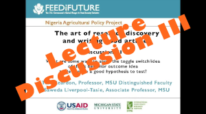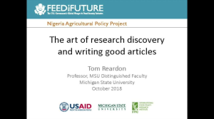How to get published in peer-reviewed journals, a lecture by T. Reardon for the FSP Nigeria Agricultural Policy Project, October 12, 2018 (1:17) -