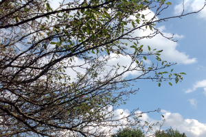 Apple scab fungus on backyard apple trees can leave plants with few leaves, but the tree is not dying. -