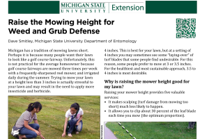 Trying to mow your lawn at a height less than 3 inches is stressful to your lawn and may result in the need to apply more insecticide and herbicide. -