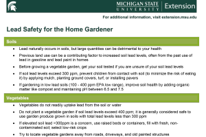 Information about lead found in soils, vegetables, water and crops. Learn what is safe and resources available to you. -