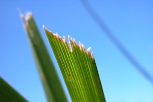 Turf affected by the disease have a grayish white cast, with initial symptoms appearing as white patches on the leaf blade.