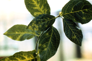 Faint, yellow vein banding, particularly of the secondary veins on current year’s growth, is the most common symptom.
