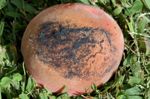 Although the rot is predominantly a postharvest problem, symptoms may also develop in the field. Rotted fruit appears similar to brown rot, but Rhizopus-affected fruit appears slightly darker, the skin may slip away from decaying flesh underneath, or the fruit may be very leaky.