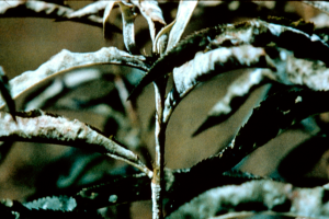 Silvering of the foliage is the characteristic symptom. At first, silvering may be associated with only one or two major branches, but eventually the entire tree becomes silvery in appearance. When infection is severe the leaves may curl upward.