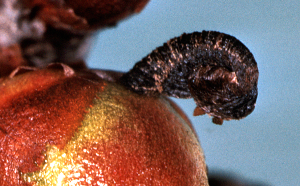 Immature larvae of the green fruitworm (GFW) feed on flower buds and new foliage.