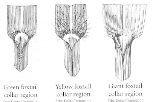 Yellow foxtail is a clumping annual grass that commonly invades Michigan turfs. Young plants can be difficult to distinguish from other grasses like crabgrass. Yellow foxtail produces a characteristic 'foxtail'-like seedhead.