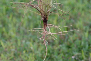 Yellow nutsedge is a persistent perennial weed of poorly drained soils. Yellow nutsedge is grass-like in its appearance with parallel leaf veination. The stem of nutsedge is triangular with leaves coming off each corner (three-ranked).