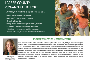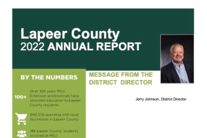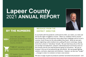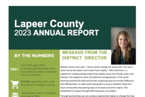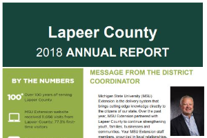 Michigan State University Extension continued to serve the residents of Lapeer County in 2018-2019 through the educational process that applies knowledge to critical issues, needs and opportunities. -