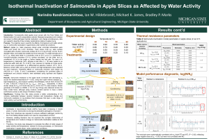 The objective was to quantify the effects of temperature and water activity on Salmonella inactivation in apple slices under isothermal conditions -