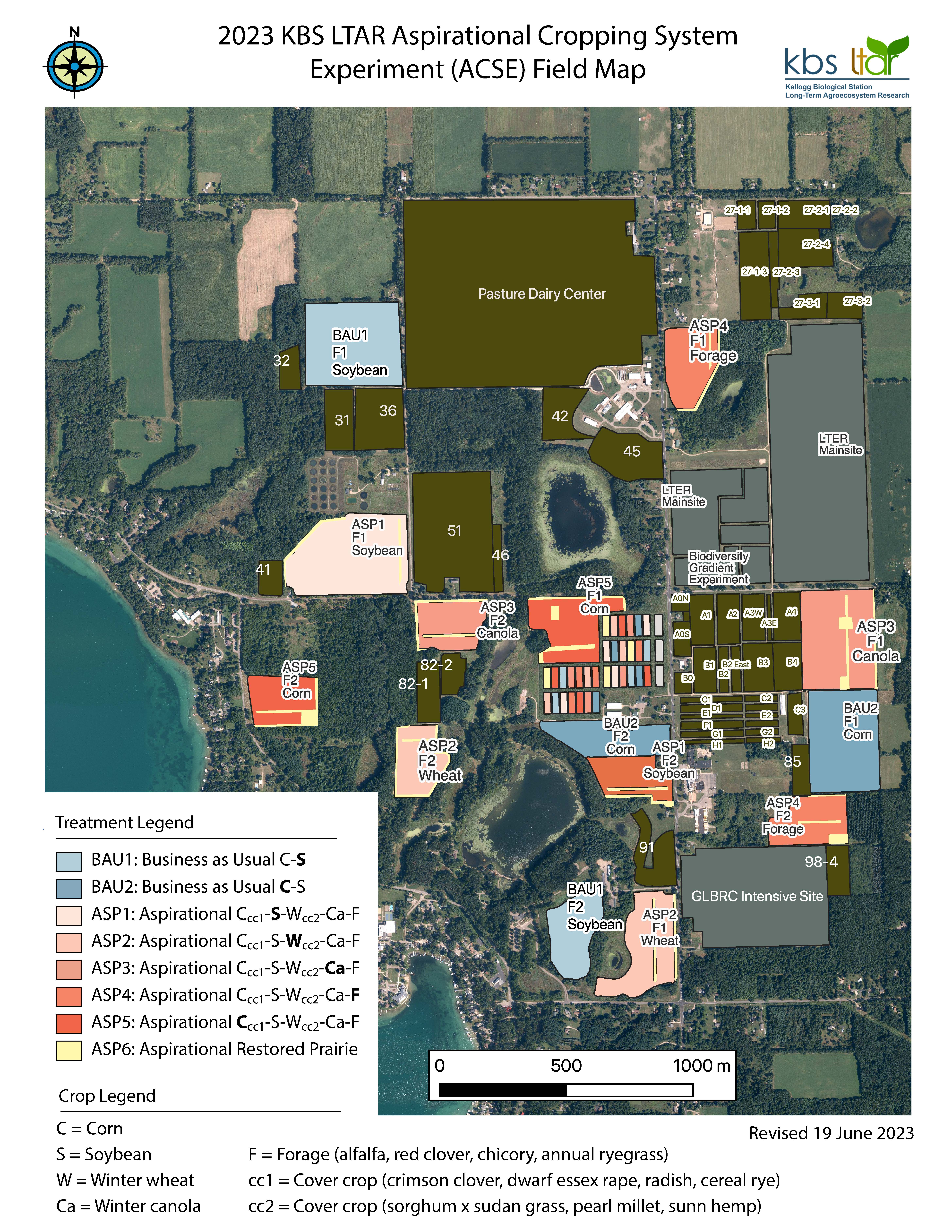 The KBS LTAR Aspirational Cropping Systems Experiment (ACSE) is part of the LTAR Network’s Croplands Common Experiment, designed to provide the long-term knowledge needed to improve the sustainability of food and forage production in the U.S. The objectives of the Croplands Common Experiment are to: