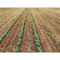 Soybeans planted between wheat rows (B. Wilke, Sep 2022)